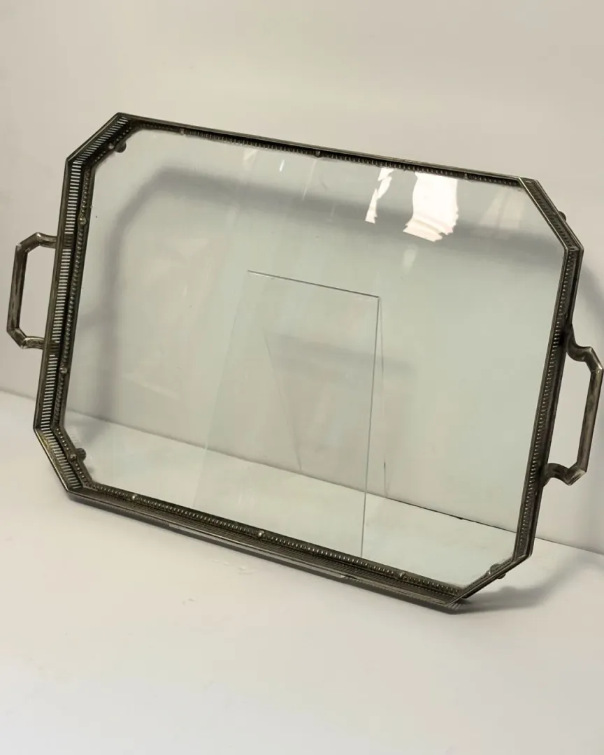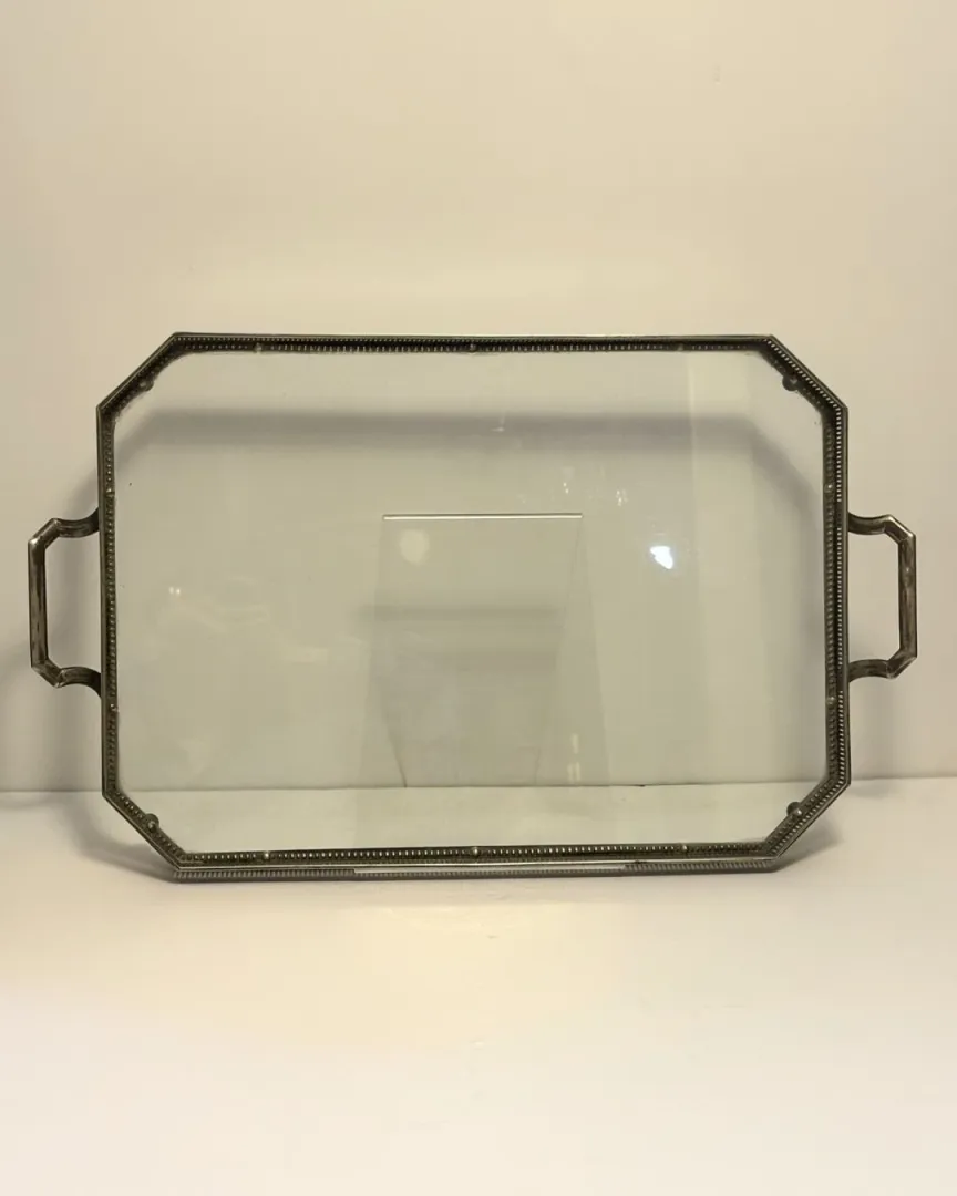AK&Cie - Ezüstözött alpakka füles tálca üvegbetéttel