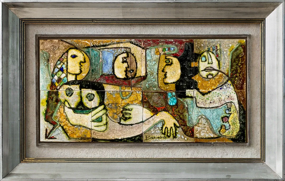 Csurgatott, üvegmázas, kerámia csempe falikép
