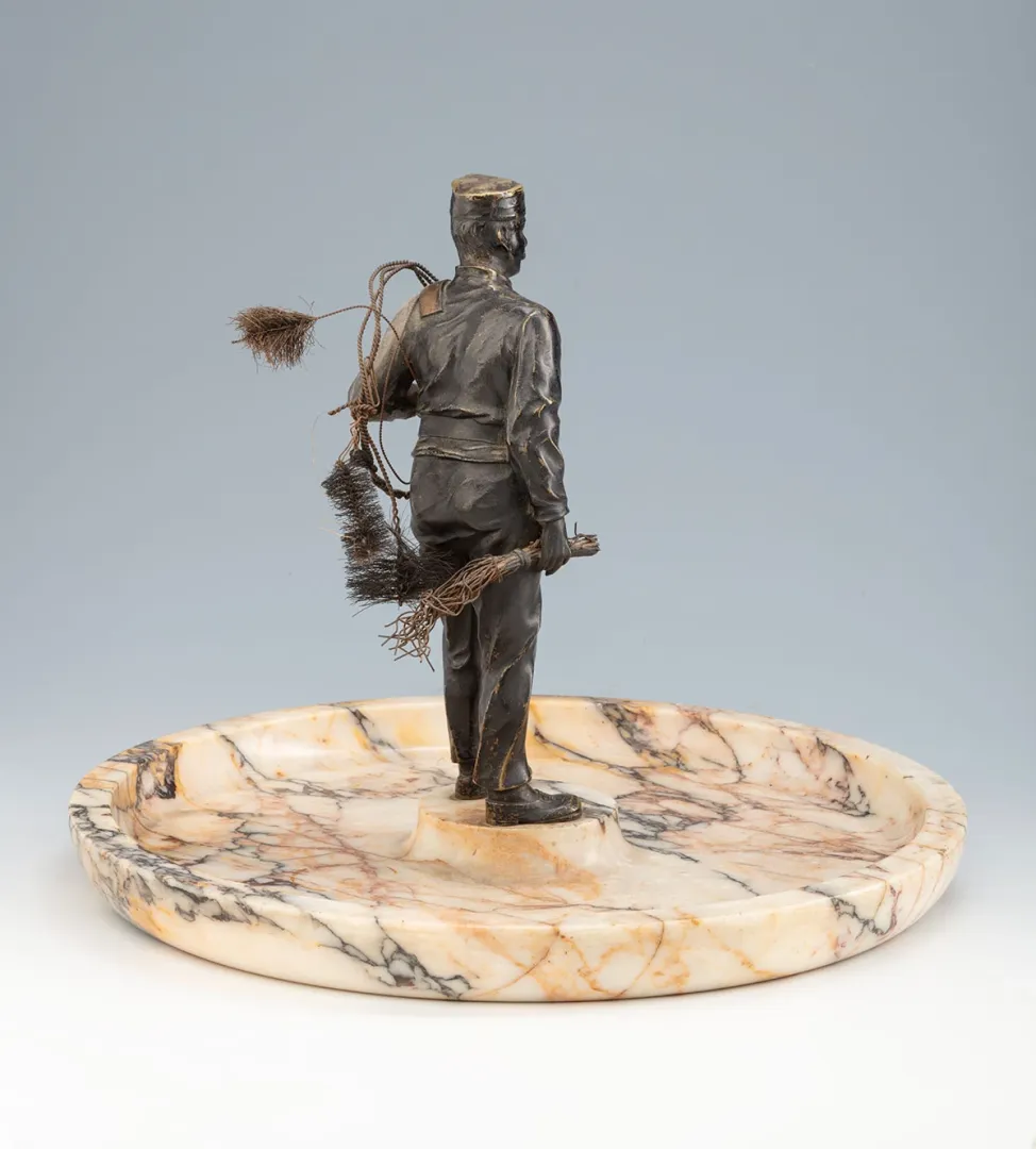 Bronz figurális névjegytartó – Kéményseprő