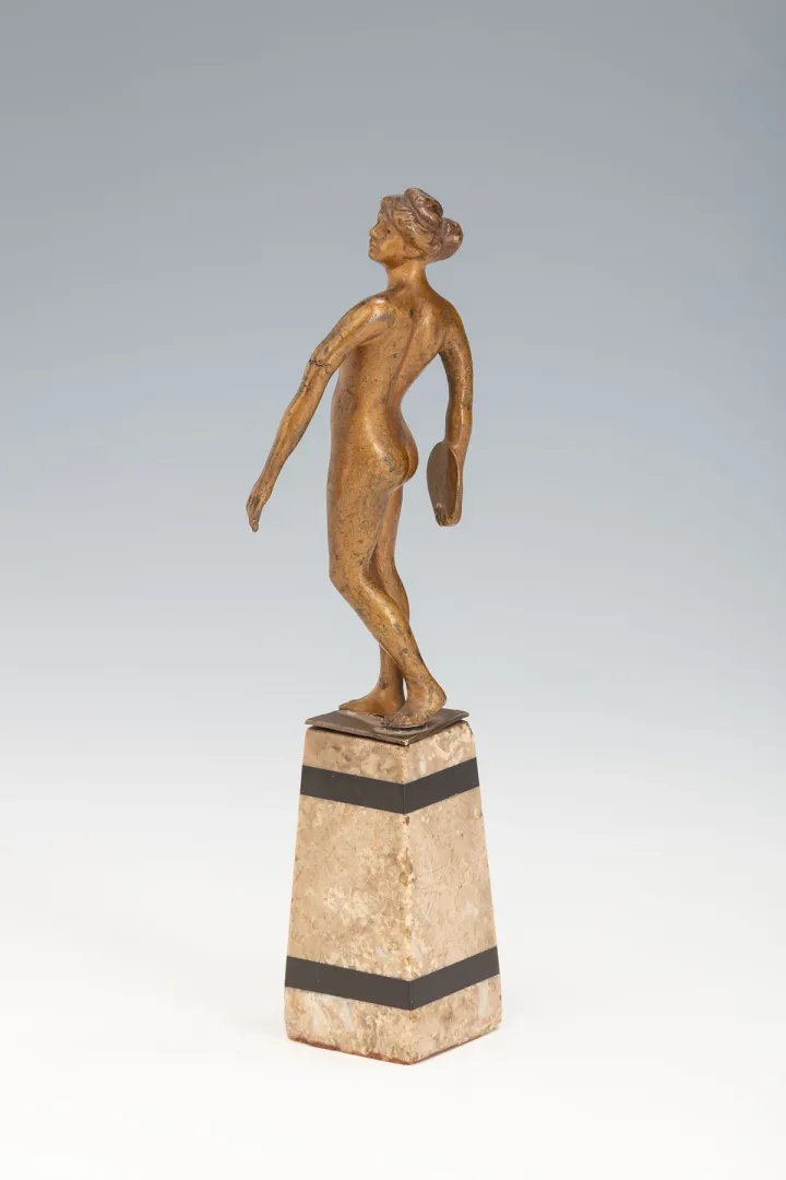 Eredeti bronz női akt szobor, az 1920-as évek környékéről, finoman kidolgozott részletekkel és elegáns, eredeti talapzattal.