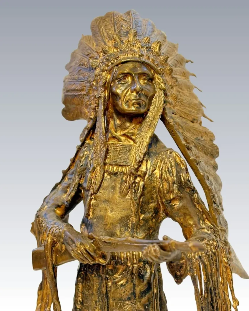 Carl Kauba bronzszobra, indián törzsfőnök ábrázolásával.