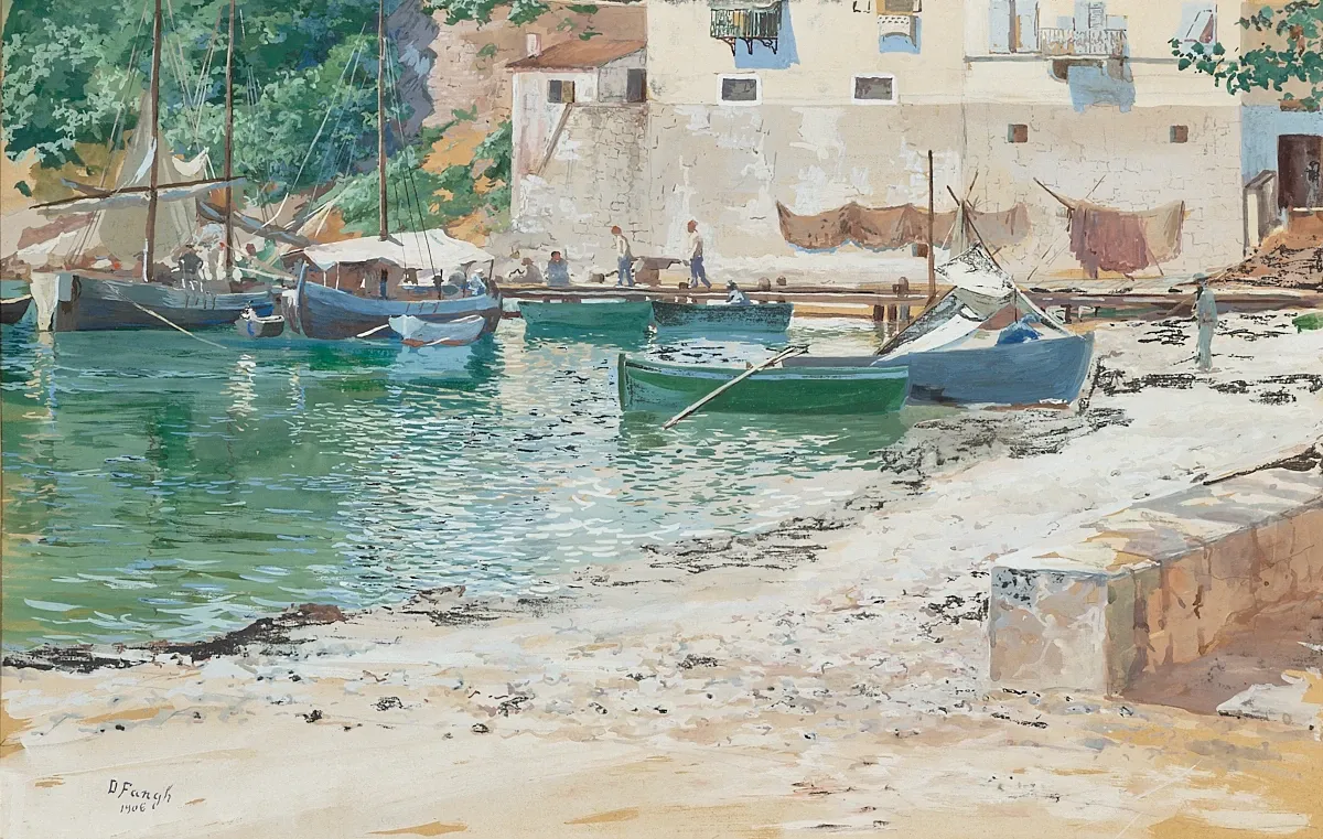 Desiderius Fangh-Dezső (1876-1947) - Kikötőjelenet halászbárkákkal 1906