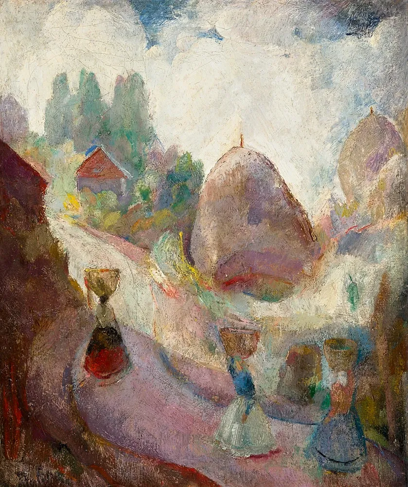 Fonó Lajos (1889-1951) - Táj boglyákkal és alakokkal