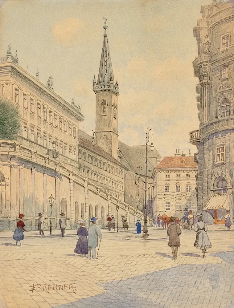Franz Brenner (1873–1945) Bécsi részlet alakokkal, konflissal