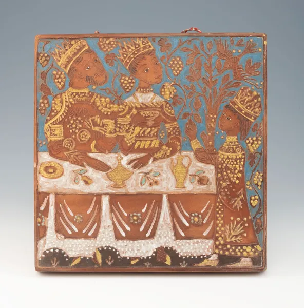 1940-es évek , Engobemázas kerámia, méretei: 25.5 x 24,5 cm, jelzett, szignált