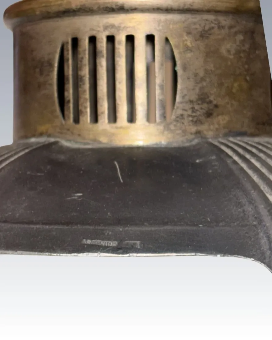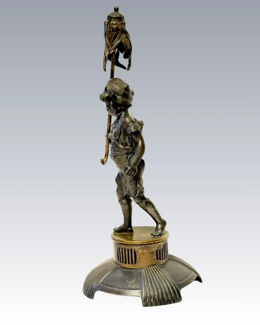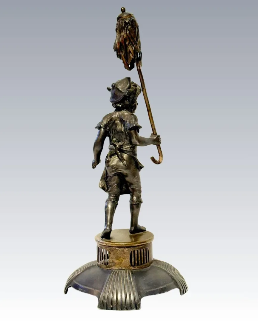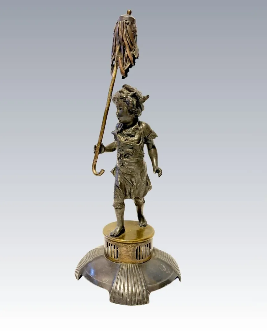 Szecessziós ón figurális szobor – Fiú ernyővel