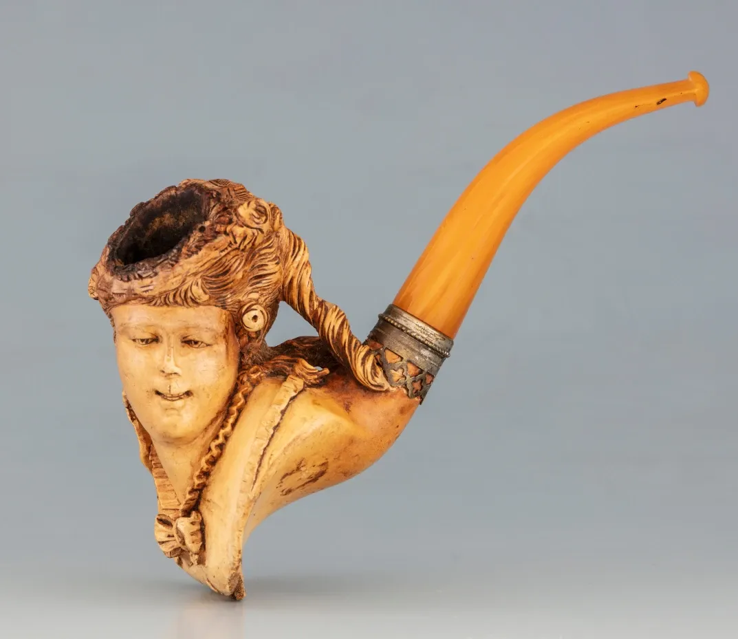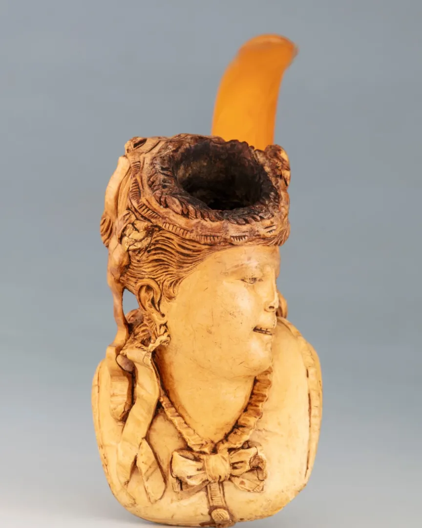 A pipa testét plasztikusan kidolgozott női alak ábrázolása díszíti.