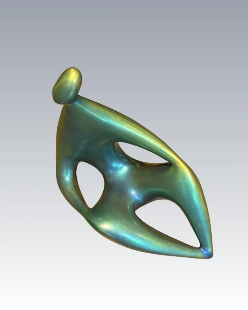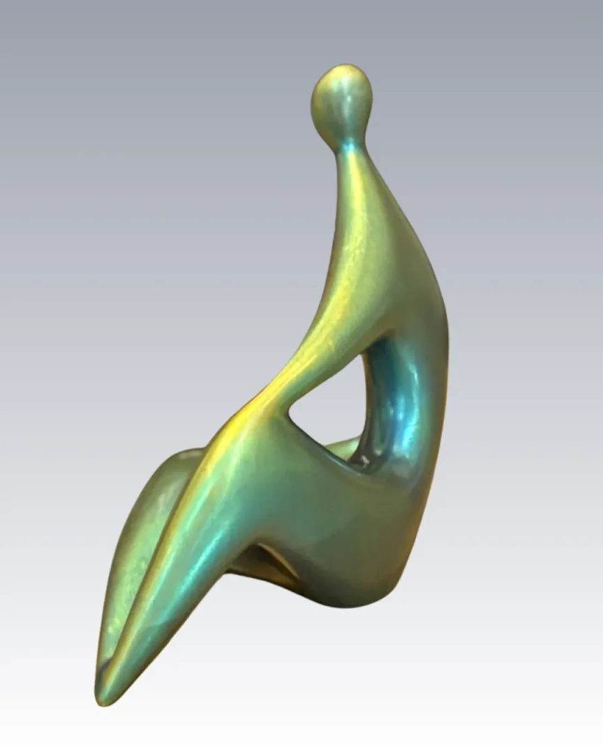 Szoborszerű, karakteres modern figura, ragyogó eozinmázzal.